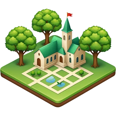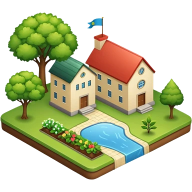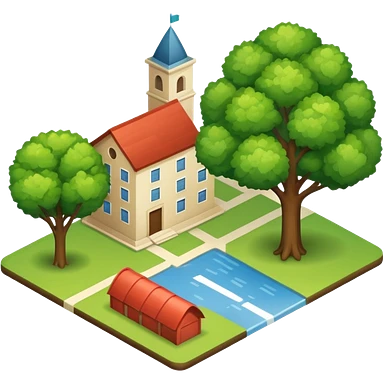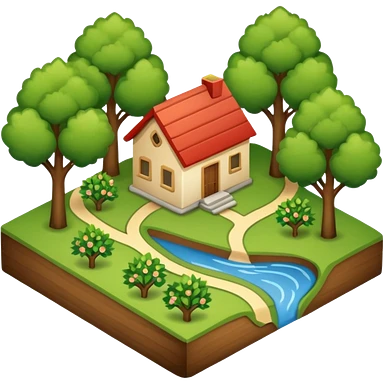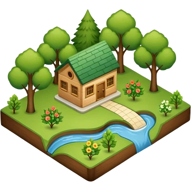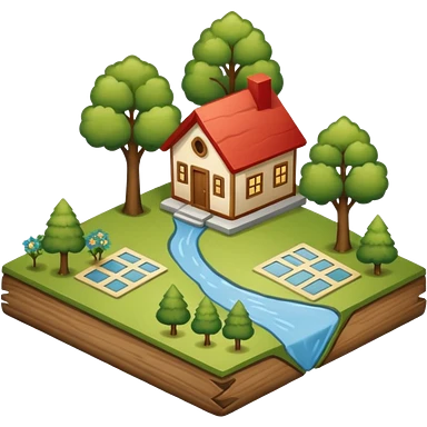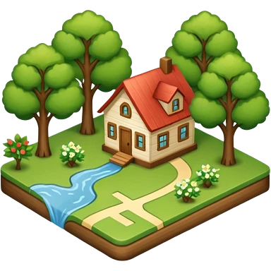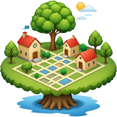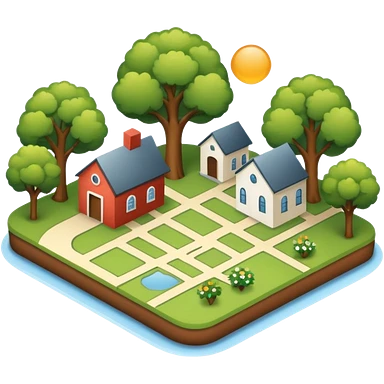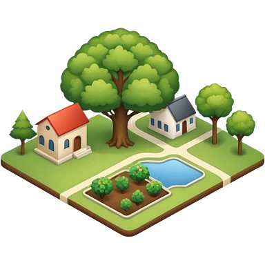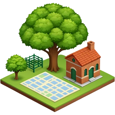 An icon featuring a local map, symbolizing local gardening. The design includes a different trees, and 1 tiny wooden house, representing the unique geography and culture of a specific area. Transparent background highlights the exploration of local history and environment. emoji