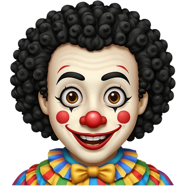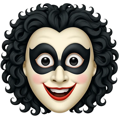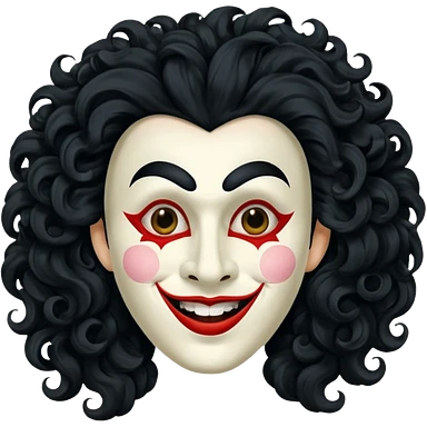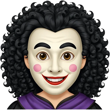 generate white clown mask emoji with a big curly black hair