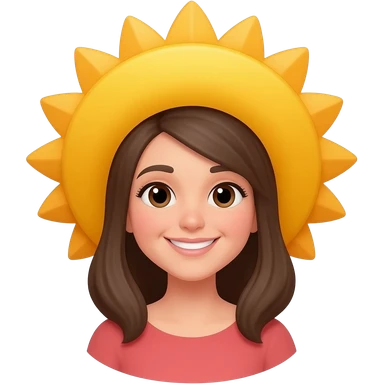 Génère un émoji avec un chapeau en forme de soleil et souriant. Une femme emoji