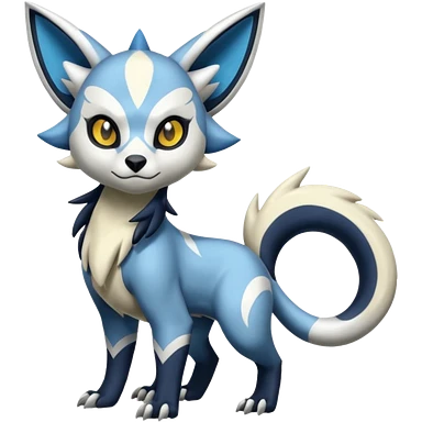 Iridescent pastel whitish pale bright cute adorable innocent precious Genet-Absol-Zeraora-Primagen-fusion-creature emoji