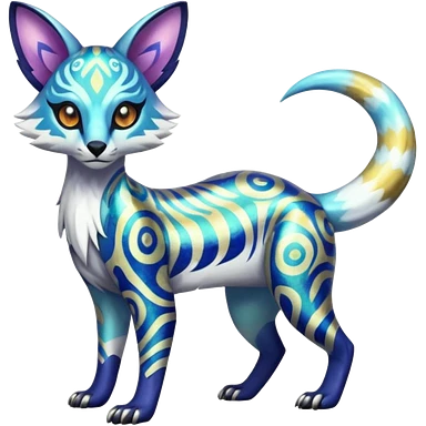 Icy floral shiny colorful neon bright vibrant patterned Genet-Absol-Zeraora-Primagen-fusion-creature emoji