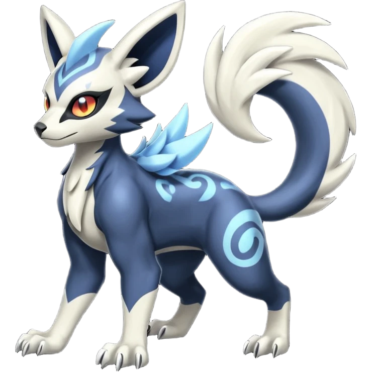 Futuristic furry fluffy floofy feathery tribal marked Genet-Absol-Kyurem-Zeraora-Primagen-fusion-creature emoji