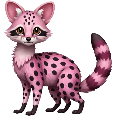 Pink-spotted genet-Trico-Vernid-Cacomistl-Fakémon-hybrid-fusion-creature (full body) emoji