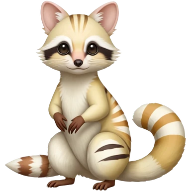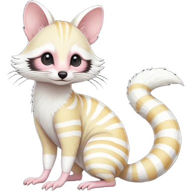 White albino pastel Genet-Numbat-Cacomistl-Tamarin-Tanuki-fusion-hybrid (full body) emoji