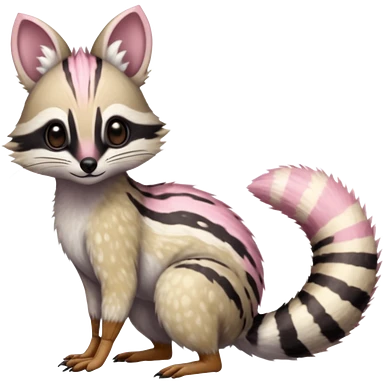 Pastel White with pastel Pink-spotted numbat-genet-Trico-Vernid-Cacomistl-Fakémon-hybrid-fusion-creature (full body) emoji