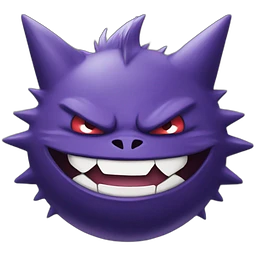 Gengar, the purple ghost Pokemon with red eyes and a mischievous grin emoji