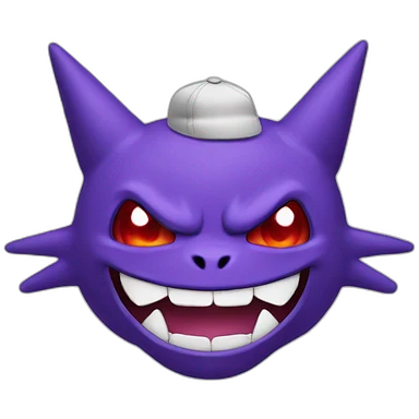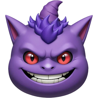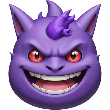 Gengar, the purple ghost Pokemon with red eyes and a mischievous grin emoji