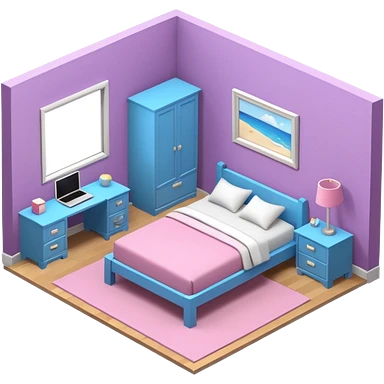 13 year old girls ultra realistic, ultra detailed large 3D view of bedroom, interior isometric emoji