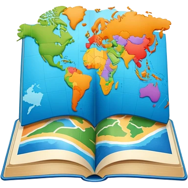 An icon featuring a globe, a compass, and a map, symbolizing geography. The design includes mountain ranges, rivers, and continents, representing the study of Earth’s landscapes and environments. Transparent background highlights the exploration and understanding of the world’s geography. emoji