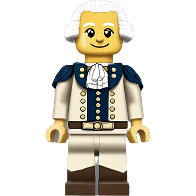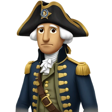 George Washington as an apple style emoji, white hair, colonial attire, friendly expression emoji