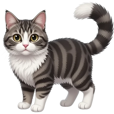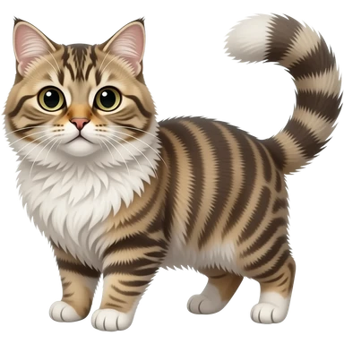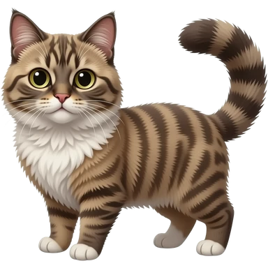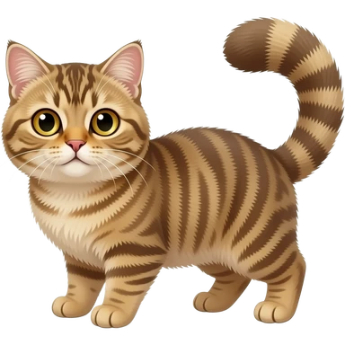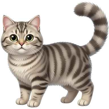 Fuzzy Scottish-Fold-Skookum-Kinkalow-Munchkin-Cat-hybrid with a long thin tufted tapered tail emoji