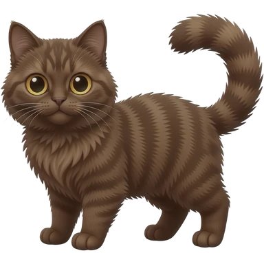 Fuzzy chocolate-brown-pointed Scottish-Fold-Skookum-Kinkalow-Munchkin-Cat-hybrid with a long thin tufted tapered tail and tufted ears emoji