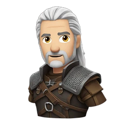 Geralt of Rivia with white hair, yellow cat eyes, and witcher medallion emoji