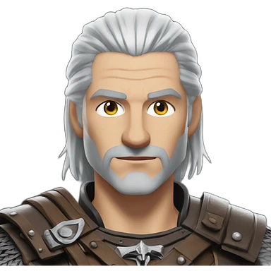 Geralt of Rivia emoji, white hair, yellow cat-like eyes, scar on face, wearing dark dark fantasy armor emoji