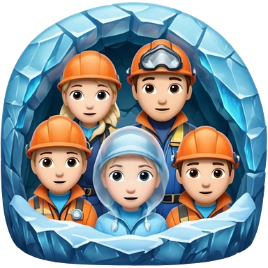 A breathtaking ice cave glowing with blue light, featuring smooth, curved walls made entirely of translucent ice. The interior reflects shimmering shades of blue and purple, with natural light filtering through the frozen surface. Realistic detail, cinematic lighting. emoji