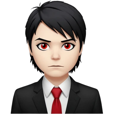 Jet-black, shoulder-length hair messy and emo