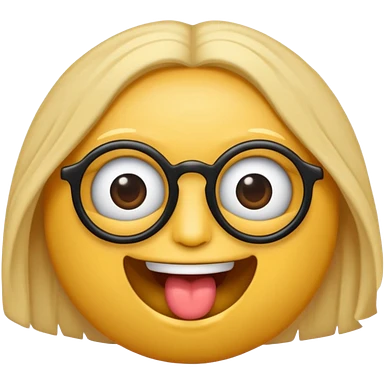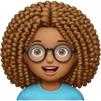 gere um boneco emoji da pele parda com o cabelo cacheado e meio grande, com olhos pretos e um óculos redondo, e também com a boca aberta mostrando os dentes emoji | AI Emoji Generator
