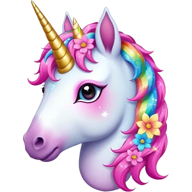 unicorn face with big thick mustache cute and purple haired and earrings emoji