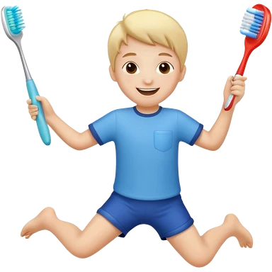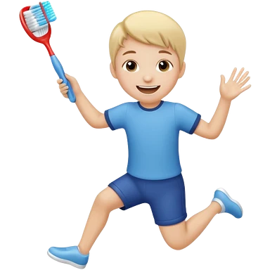 Creat an emoji for kid jumping and holding toothbrush emoji