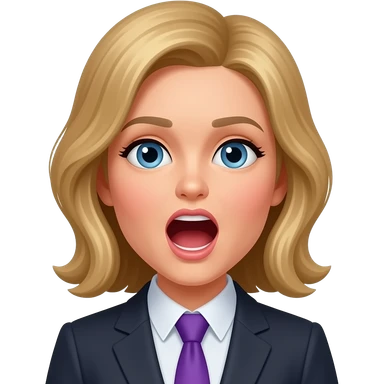 german woman yawning wearing purple tie emoji