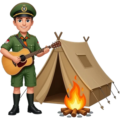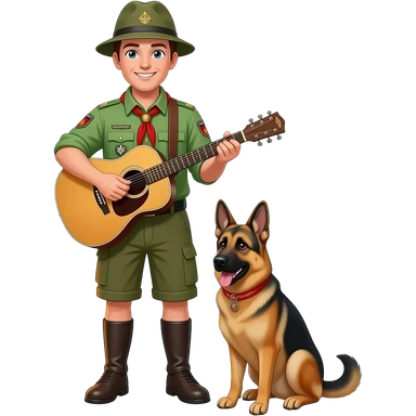 deutscher scout mit guitar und campfire und schäferhund emoji
