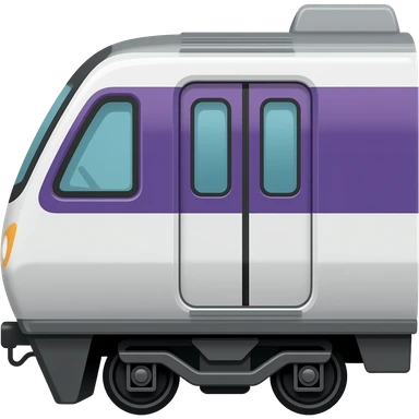 A purple and white train with a logo showing a purple planet with a rocket emoji