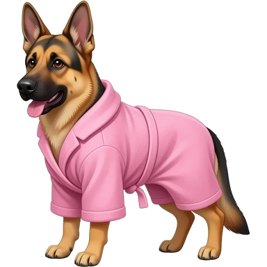german shepherd mix in a pink robe emoji