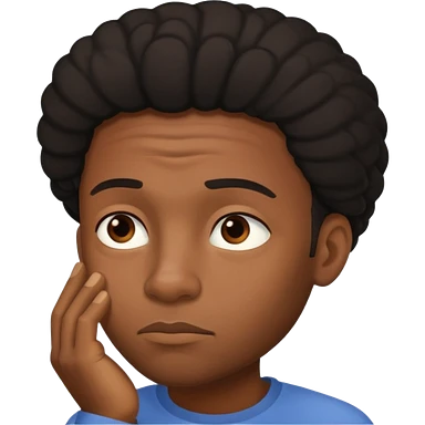 a boy with dark curly hair hes a light tan and has a blue shirt emoji