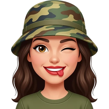 yellow round emoji Woman emoji camo hat red lip smirk wink biting lip emoji