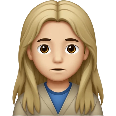 a girl with a pink laptop with headphones, color outline icon style, looking sad emoji