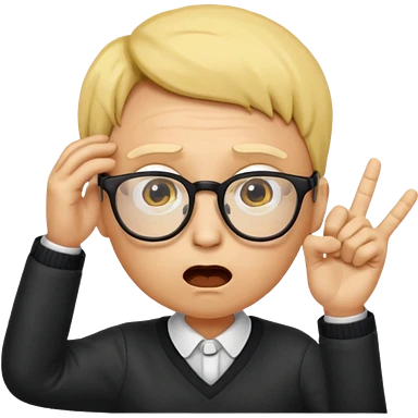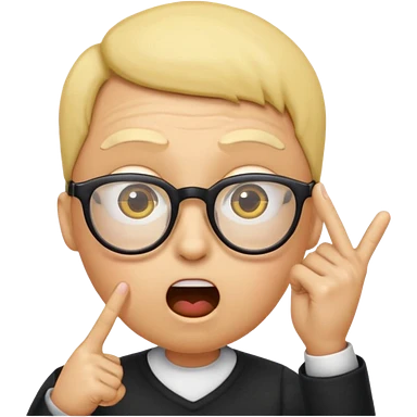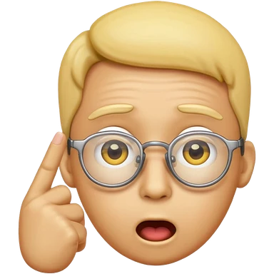 Generate a emoji head base with a shocked expression with a finger pushing the glasses down a little bit make the glasses tipped and make the head full yellow with a slight tint at the top with no hair emoji