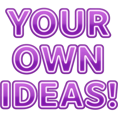 words "Get Your Own Ideas!" in neon purple, girly typography lettering with a crisp white outline border around each letter, detailed, 3d rendering, high definition. must have no emoji icons, no emoji faces, no human figures emoji