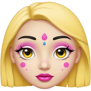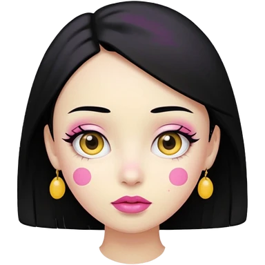 Yellow face with cute eyes pink lips black hair and black dot at forehead emoji