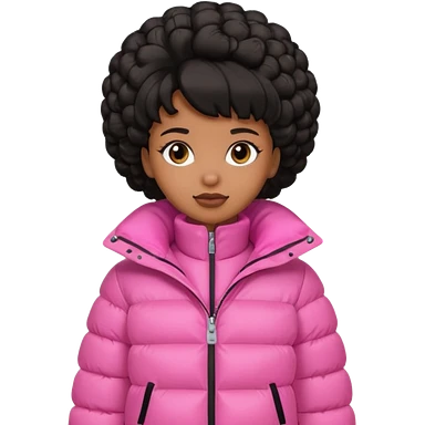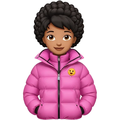 A caramel skinned girl that’s has puffy black hair with her hair up skinny and wears a pink puffer coatb emoji