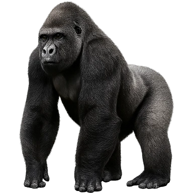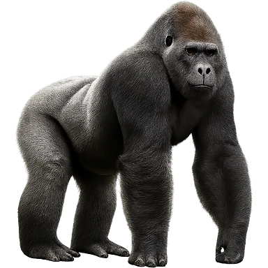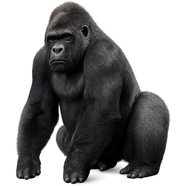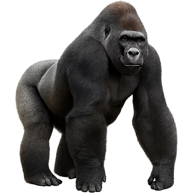 a gorilla with no legs, sitting position, detailed fur, simple background emoji
