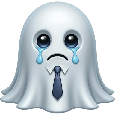 ghost has a rounded, flowing, water-drop shape with no legs. It wears a very small, crooked office necktie. The ghost has big, tired eyes with dark circles under them, looking soulless and exhausted. emoji