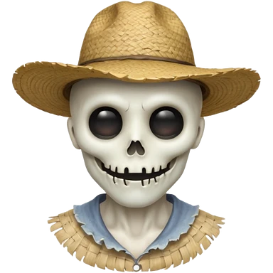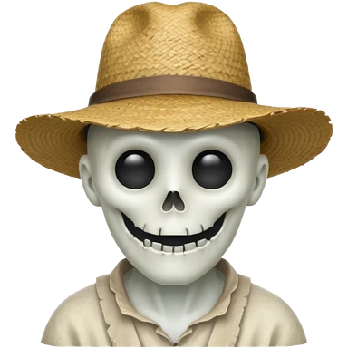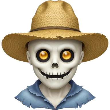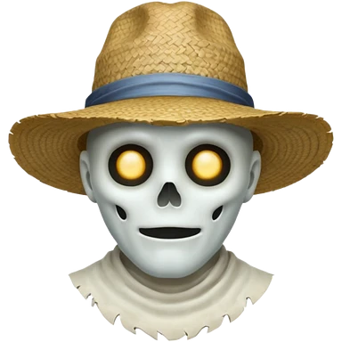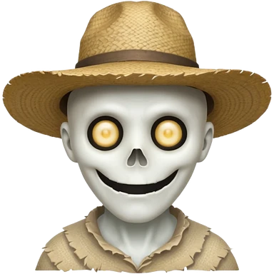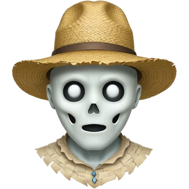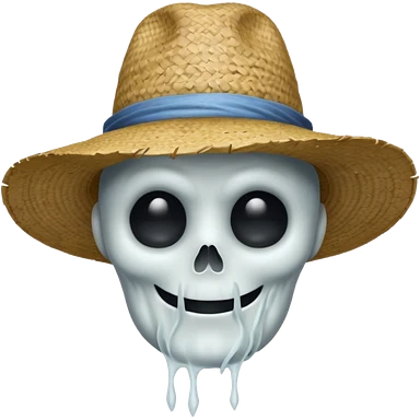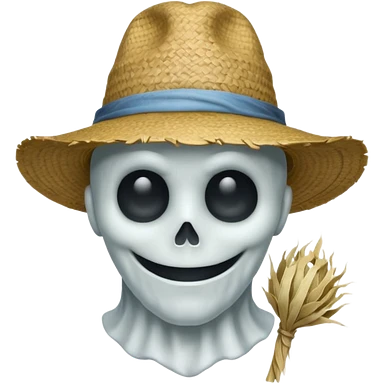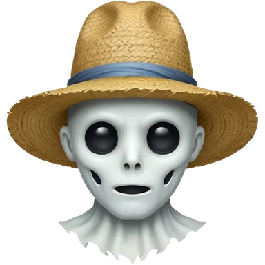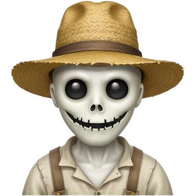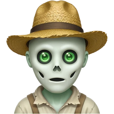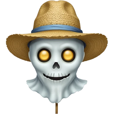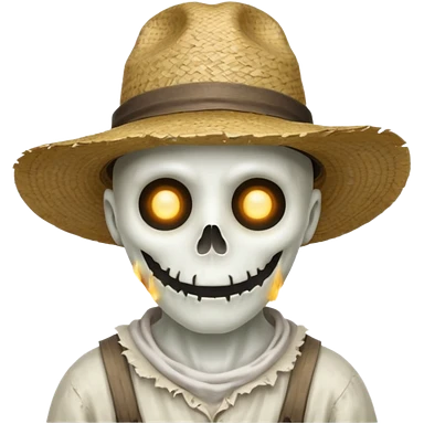ghost farmer portrait, head and shoulders only, straw hat, spooky pale face, cracked skin, haunted vibe, 3D cartoon, mobile game icon style, clean background, no text, no watermark emoji