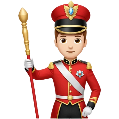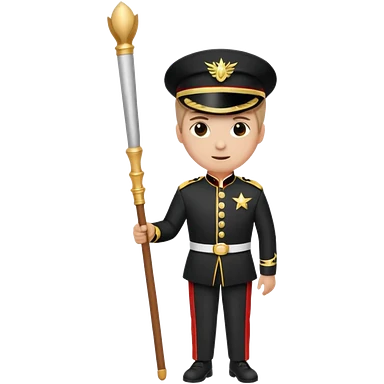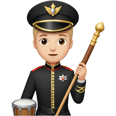 A full body marching band drum major in a black and gold uniform emoji