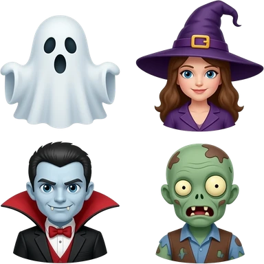 Ghost, witch, vampire, and zombie emoji