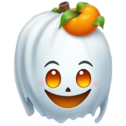 classic girl ghost, sheet with eye holes, bow on head, floating emoji