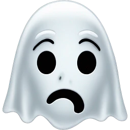 A simple white ghost emoji with large oval black eyes and a wide oval black mouth, looking surprised. No background emoji