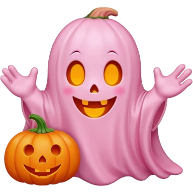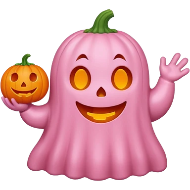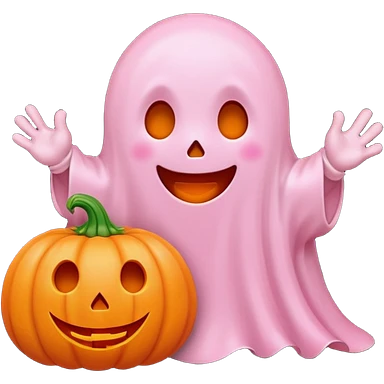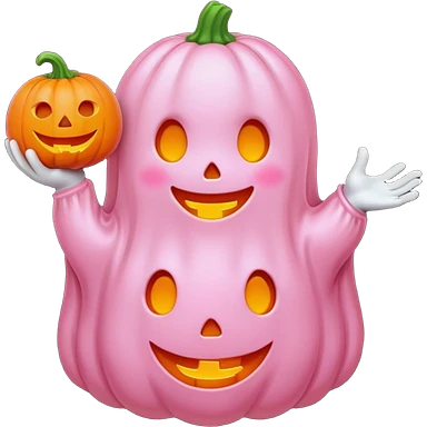 pastel pink ghost with orange pumpkin kawaii style emoji