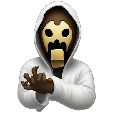 “Apple emoji of Ghostface: white mask with a screaming expression, dark eyes, and a black hooded cloak.” emoji