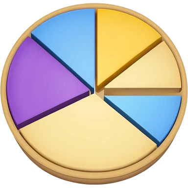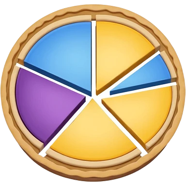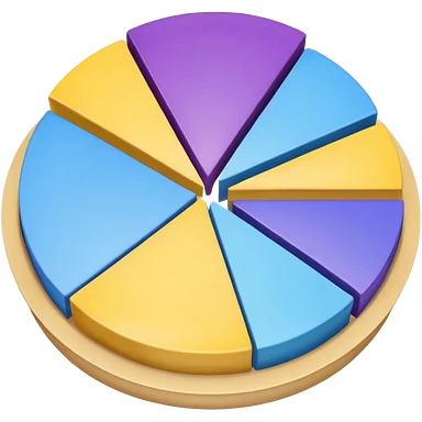 A pie chart with purple, yellow and blue colors only, with only 3 slices emoji