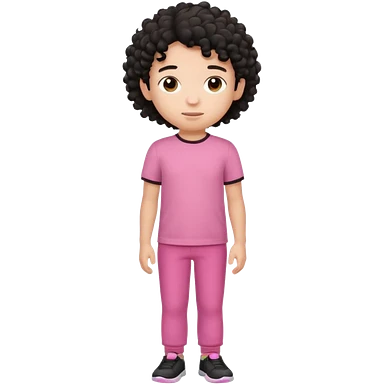 Kid boy wearing pink T-shirt, black curly hair, full body emoji