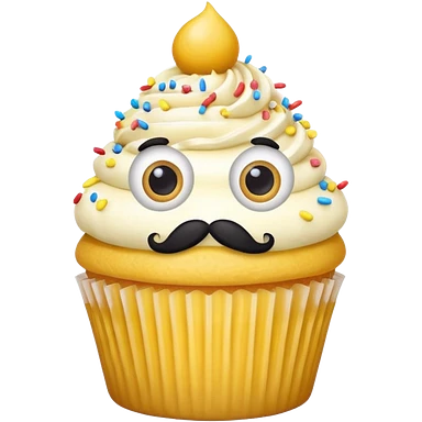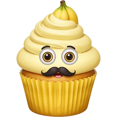 giant mustached, banana cupcake, big eyes emoji | AI Emoji Generator