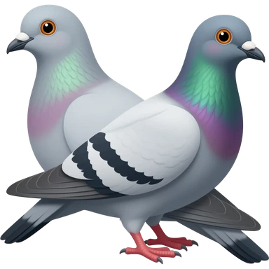 A pigeon with gray feathers and two dark gray stripes on eatch of his wings, a dark gray and yellow beak, and a purple and green chest. emoji