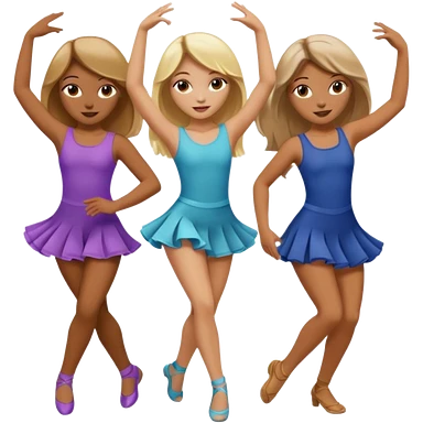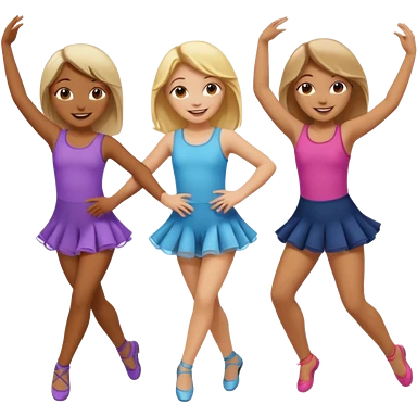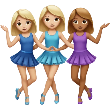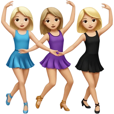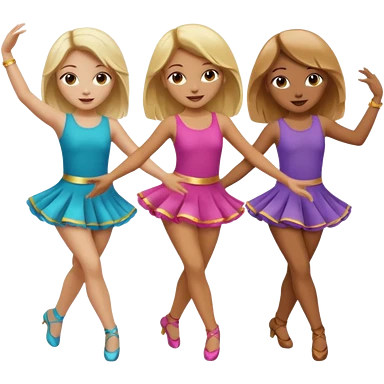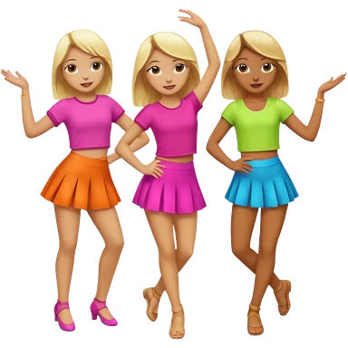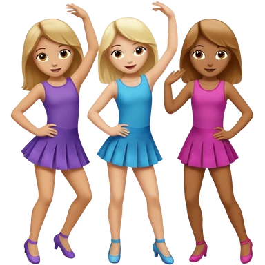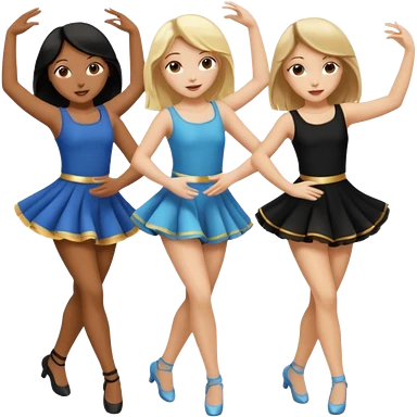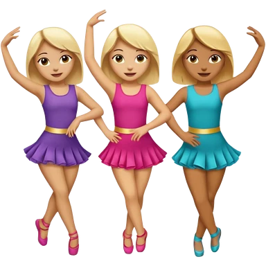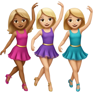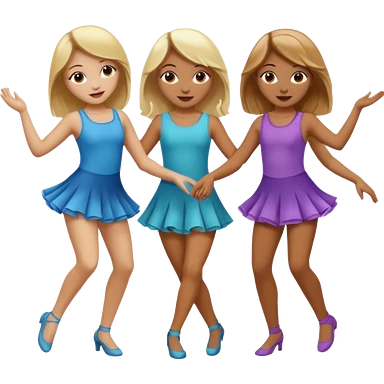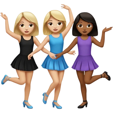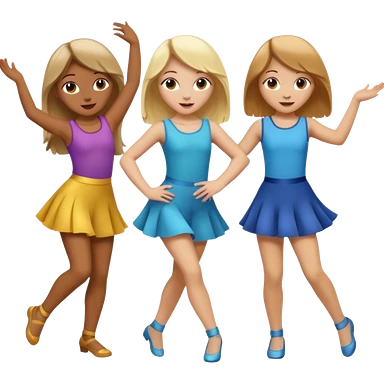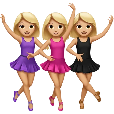 Emoji of 3 Girls dancing one with blonde hair, one tan skin with brown hair and one with black hair emoji