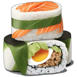 A cute golden retriever puppy eating gimbap in iPhone emoji style, soft 3D glossy texture, bright vivid colors, no outlines, centered composition, transparent background. emoji