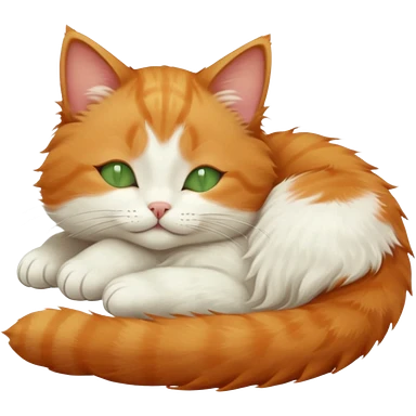 ginger and white small cat eyes closed lying down in weird position emoji | AI Emoji Generator